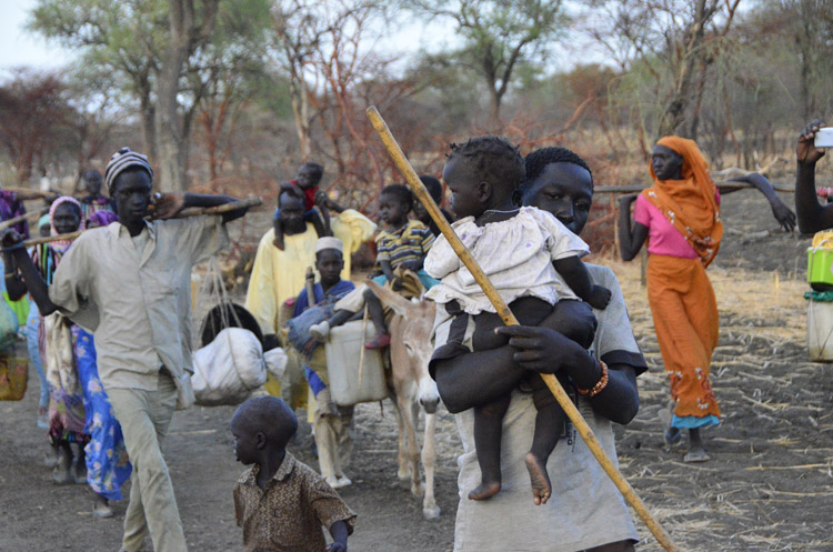 13. marec 2013 - Begunci na poti v begunsko taborišče Yida v Južnem Sudanu
